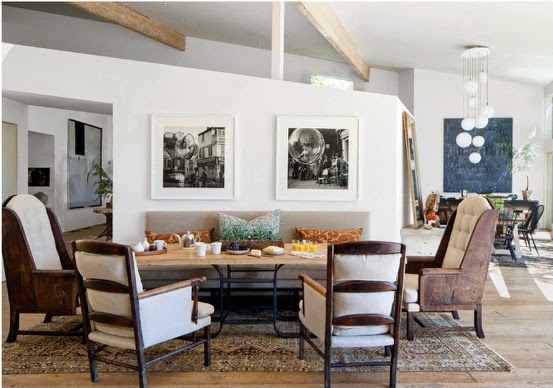 I love the comfortable dining space they created with a banquette and 4 large chairs.